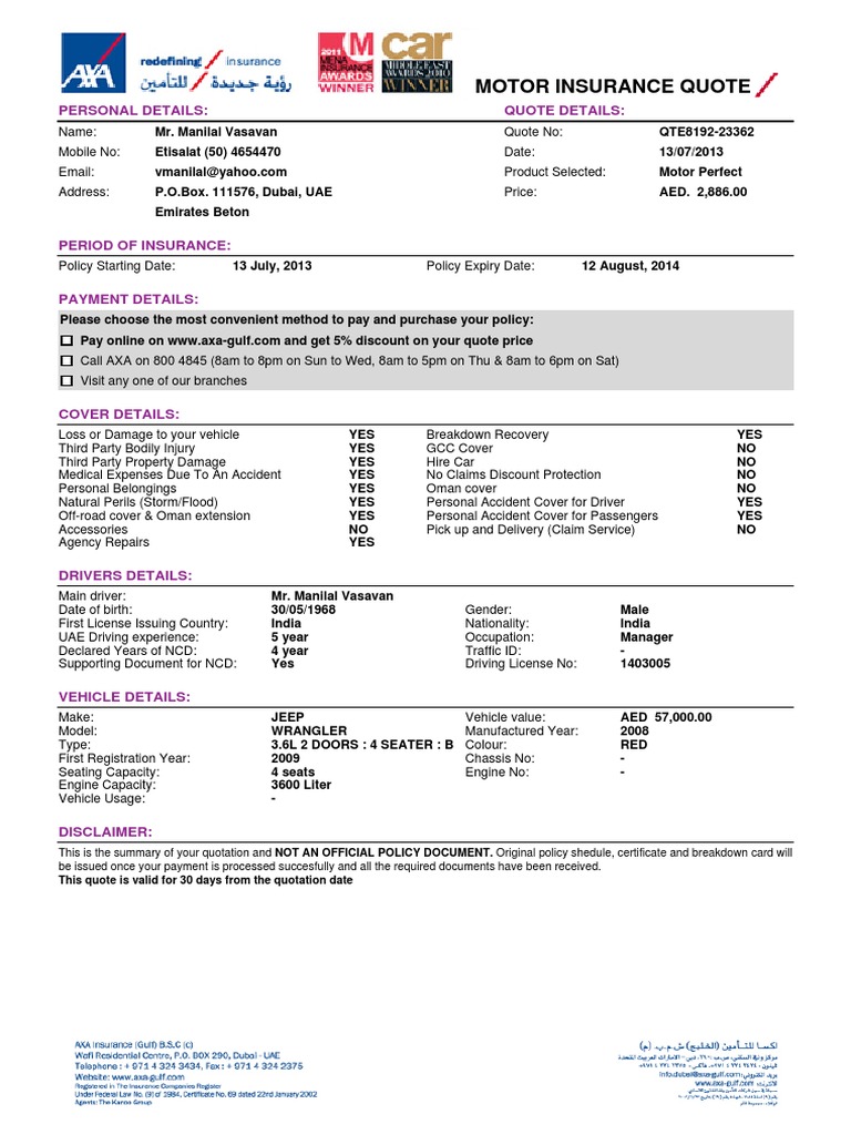 Why Axa Motor Insurance Is Cheapest Rate Comprehensive Benefits